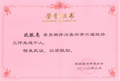 董事长沈耿亮被评为“嘉兴市六届政协工作先进个人”