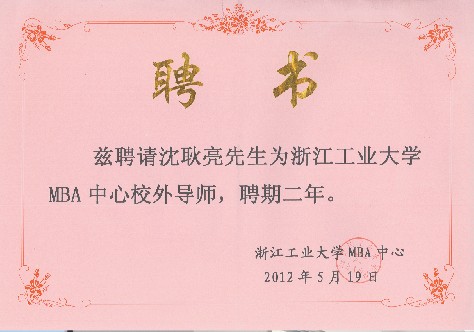 交流活动一开始,夏建胜教授就代表浙江工业大学MBA中心授予公司董事长沈耿亮“浙江工业大学MBA中心校外导师”的荣誉称号并颁发证书。在热烈的掌声中,公司董事长沈耿亮首先向在场莅临我公司参观交流的全体师生表示热烈的欢迎,接着又热情介绍了公司的基本情况、发展历程、产品信息,经营状况以及未来的发展计划等。公司总经理助理兼人力资源与企管部经理郎洪峰作为前MBA学员发表个人感言并分别从企业家、产品、质量、人才等角度和学员交流了何为创业、如何创业等个人感想。交流活动结束前,公司董事长沈耿亮还与学员们就公司体制与公司发展、外贸的销售渠道、申请“中国驰名商标”等相关学员感兴趣的话题展开了讨论交流。整场交流活动在欢快的掌声中结束。