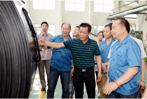 随后,池晓明主席一行又参观了公司钢丝绳芯输送带车间,对公司的产品工艺流程、产品特性等有了更进一步的了解。