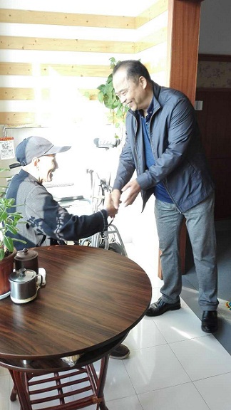 本报讯  10月21日九九重阳节上午,公司董事长沈耿亮在桐乡和济院颐养院总经理张梁铨的陪同下看望慰问了颐养院老人,沈董详细询问了老人们的身体和生活情况,叮嘱老人们在季节更替天气转冷的时候要特别注意做好保暖工作,吃好穿好,平时多开窗户和到室内外活动场所健身锻炼,呼吸新鲜空气,保持心情乐观开朗,随后为每个老人送上了热水袋,并祝老人们健康长寿、开心快乐。当日上午董事长沈耿亮还委托行政部经理严宏斌到洲泉敬老院看望慰问了老人,严宏斌为每位老人送上了热水袋,并转达了董事长对老人们的节日祝福!