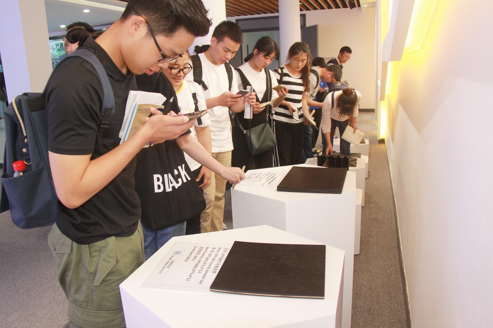 最后,在副总经理郎洪峰的带领下,同学们实地参观了公司的研发中心、生产车间、实验室等地,了解部分岗位的基本工作内容,让学生们对自己未来的职业规划有直观的感受。同时,郎副总还在现场给同学们讲解了输送带生产的流程和操作规范,及生产工艺的相关技术。与同学们现场互动交流,极大促进了同学们学习本专业的积极性,大家都好奇地观察车间内的情况,询问详情,认真作笔记。